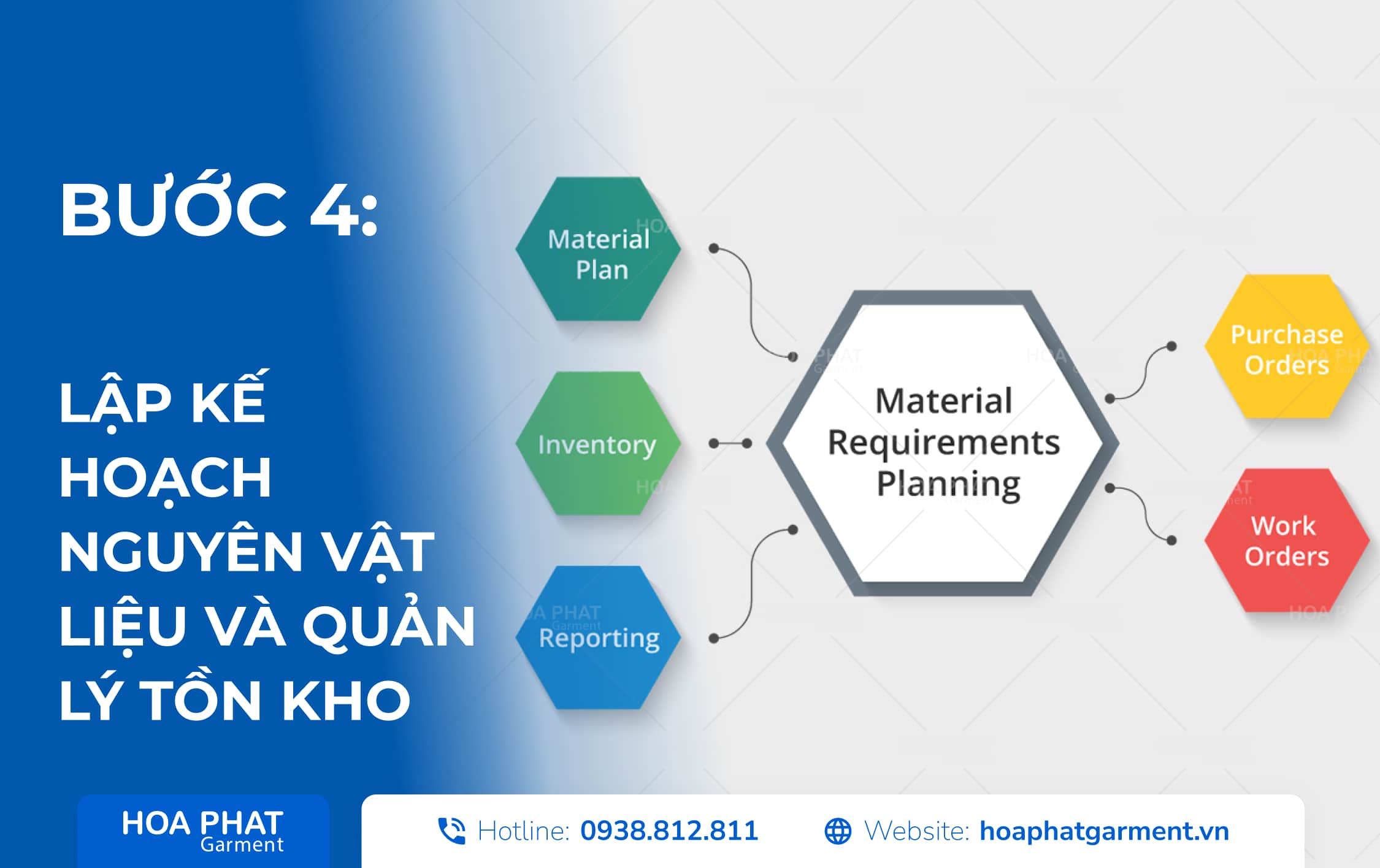 Kế hoạch sản xuất không thể tách rời với Material Requirement Planning – MRP, hệ thống xác định số lượng, chủng loại và thời điểm cần đặt nguyên phụ liệu. Điều này bao gồm: